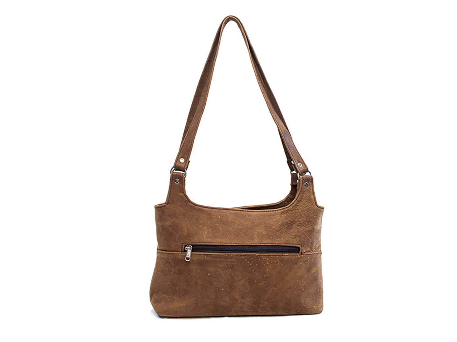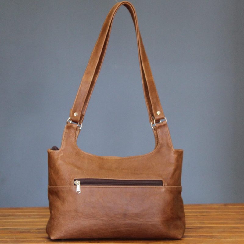A classic handbag made of full grain leather. It has two long, flat shoulder straps for comfort. On the back of the bag there is a zip pocket. Fully lined with a zip pocket and two slip pockets in the lining.