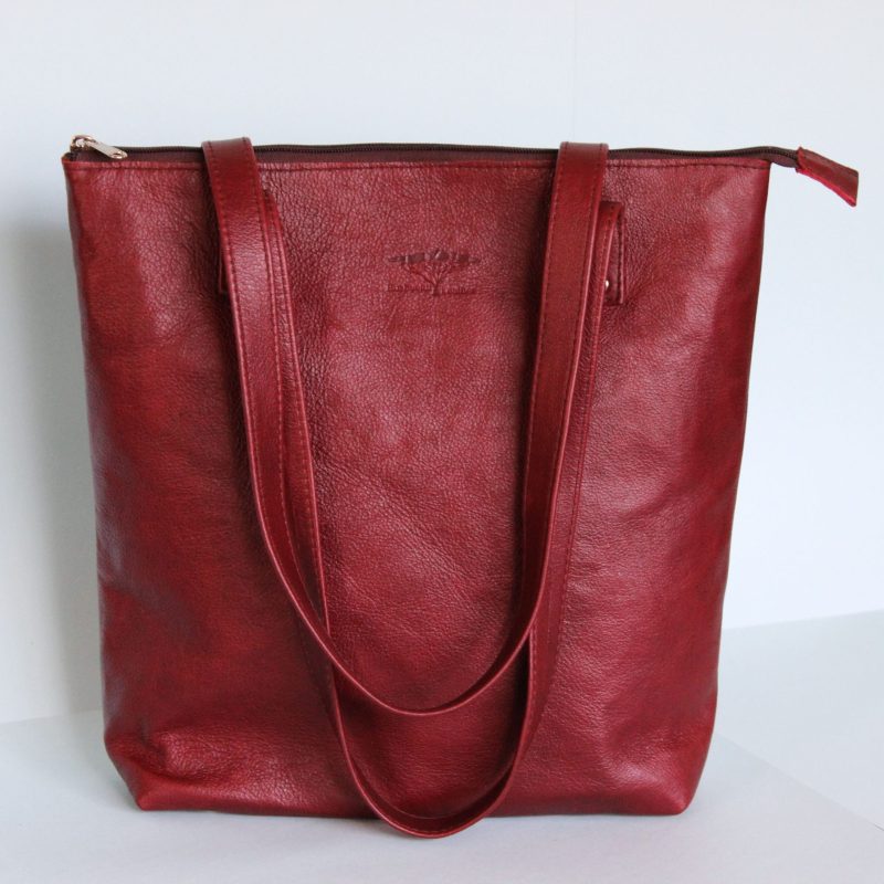 Top grain leather Tote Bag. This beautiful, practical bag is fully lined with two slip pockets and a zipped pocket in the lining. It comes with flat shoulder straps that is secured with rivets.